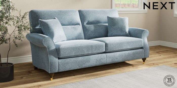 7.2.10 Buy Ashford Highback 3 Seater Sofa Plush Chenille Light Blue Modern Turned Metal Cap - Mid from the Seasons online shop Click here to use our website with more accessibility support, for example screen readers