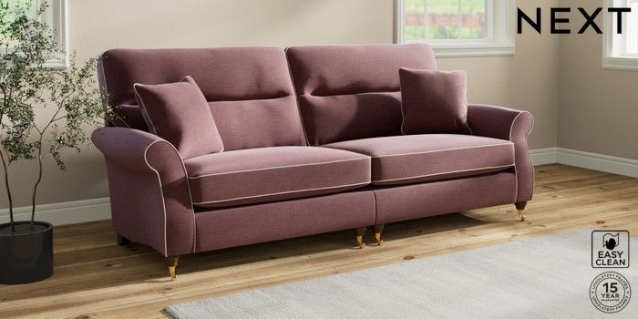 7.3.1 Buy Ashford Highback 4 Seater Sofa Fine Chenille with Contrast Mid Mulberry Purple and Oyster Castor - Mid from the Seasons online shop Click here to use our website with more accessibility support, for example screen readers