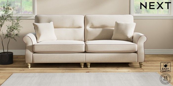 Sink into the Ashford high-back sofa, where country style meets ultimate comfort. Its generous size and elegant scroll arms give it a classic look. You'll love the extra back support from its higher design. The seats are designed for firm support and long-lasting comfort, with a special firmer high-density foam core sandwiched between soft foam toppers to give ultimate support, durability and recovery whilst offering a more tailored look that bounces back into shape – no need for constant plumping! These seat cushions are low maintainence and will return to their shape when they are not in use. We've added scatter cushions filled with a luxurious fibre mix for added comfort. Seat cushions are reversible.