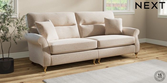 Sink into the Ashford high-back sofa, where country style meets ultimate comfort. Its generous size and elegant scroll arms give it a classic look. You'll love the extra back support from its higher design. The seats are designed for firm support and long-lasting comfort, with a special firmer high-density foam core sandwiched between soft foam toppers to give ultimate support, durability and recovery whilst offering a more tailored look that bounces back into shape – no need for constant plumping! These seat cushions are low maintainence and will return to their shape when they are not in use. We've added scatter cushions filled with a luxurious fibre mix for added comfort. Seat cushions are reversible.