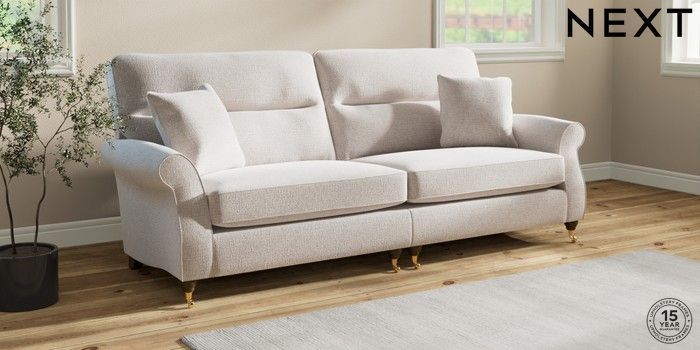 Sink into the Ashford high-back sofa, where country style meets ultimate comfort. Its generous size and elegant scroll arms give it a classic look. You'll love the extra back support from its higher design. The seats are designed for firm support and long-lasting comfort, with a special firmer high-density foam core sandwiched between soft foam toppers to give ultimate support, durability and recovery whilst offering a more tailored look that bounces back into shape – no need for constant plumping! These seat cushions are low maintainence and will return to their shape when they are not in use. We've added scatter cushions filled with a luxurious fibre mix for added comfort. Seat cushions are reversible.