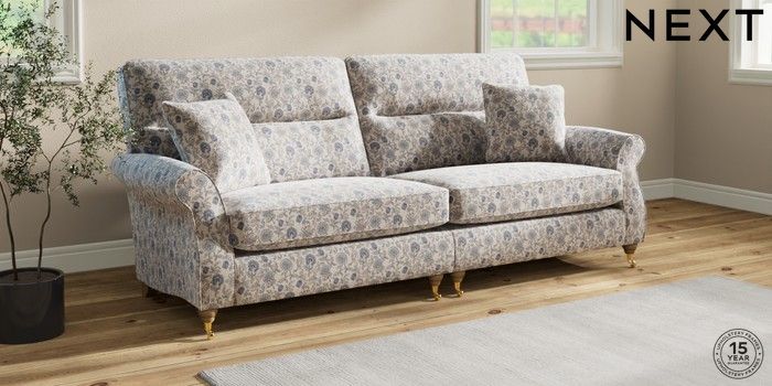 7.3.1 Buy Ashford Highback 4 Seater Sofa Relaxed Linen Look Print Woodblock Floral Blue Castor - Light from the Seasons online shop Click here to use our website with more accessibility support, for example screen readers