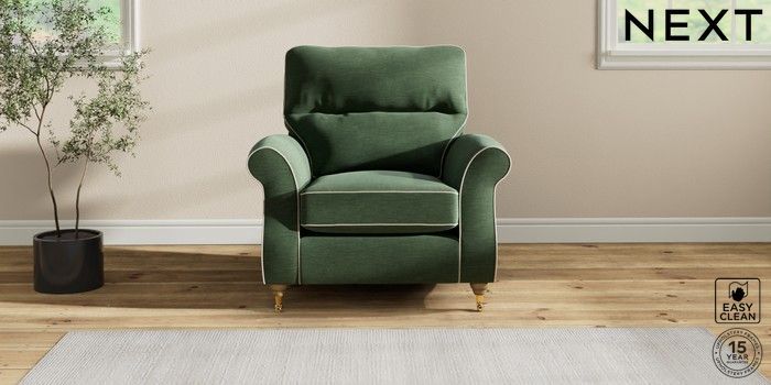 7.3.1 Buy Ashford Highback Armchair Fine Chenille with Contrast Mid Khaki Green and Oyster Castor - Light from the Seasons online shop Click here to use our website with more accessibility support, for example screen readers