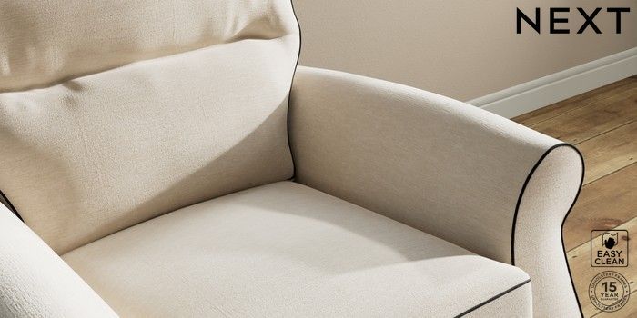 A chunky, hardwearing fabric with a timeless look which can tackle most household stains by blotting or gently wiping the fabric with water and a mild detergent. This Fabric is covered by the Quality Fabric Kitemark