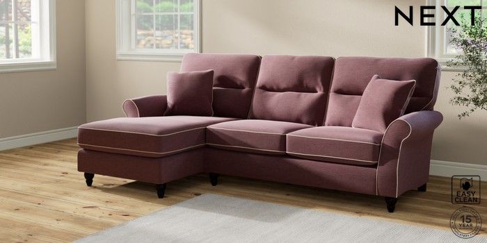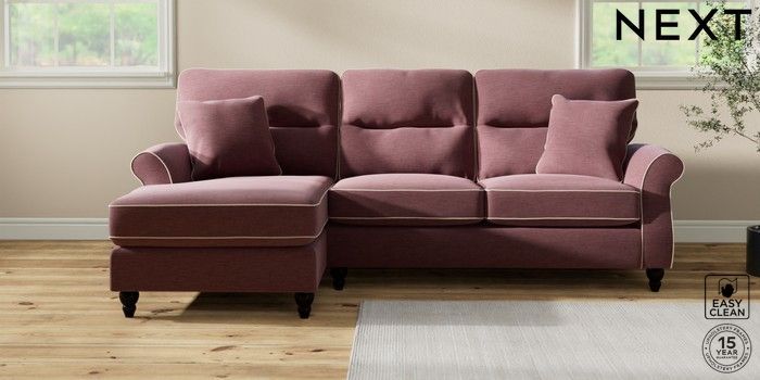 7.3.1 Buy Ashford Highback Medium Sofa Chaise - Left Hand Fine Chenille with Contrast Mid Mulberry Purple and Oyster Low Turned - Dark from the Seasons online shop Click here to use our website with more accessibility support, for example screen readers