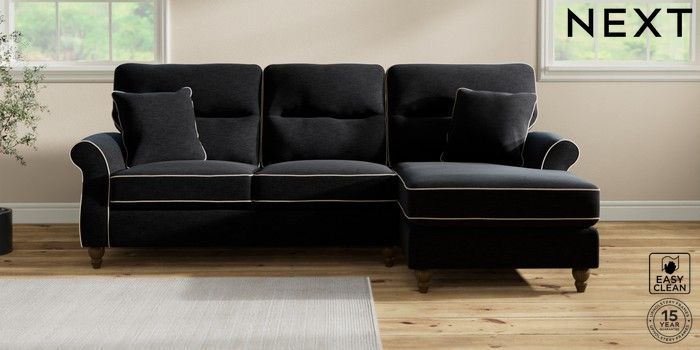 7.3.1 Buy Ashford Highback Medium Sofa Chaise - Right Hand Fine Chenille with Contrast Black and Oyster Low Turned - Mid from the Seasons online shop Click here to use our website with more accessibility support, for example screen readers