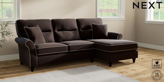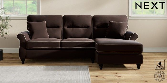7.3.1 Buy Ashford Highback Medium Sofa Chaise - Right Hand Fine Chenille with Contrast Chocolate Brown and Oyster Low Turned - Dark from the Seasons online shop Click here to use our website with more accessibility support, for example screen readers