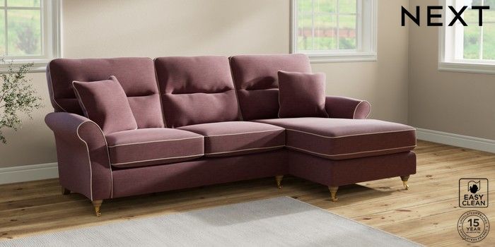 7.3.1 Buy Ashford Highback Medium Sofa Chaise - Right Hand Fine Chenille with Contrast Mid Mulberry Purple and Oyster Castor - Light from the Seasons online shop Click here to use our website with more accessibility support, for example screen readers