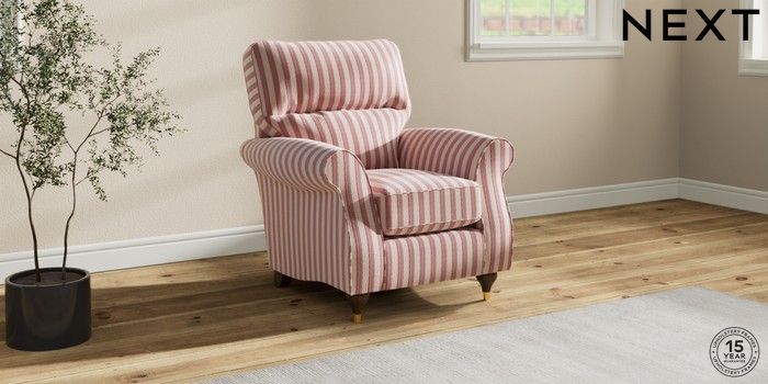 7.3.1 Buy Ashford Highback Small Armchair Bold Chenille Stripe Dark Pink Modern Turned Metal Cap - Mid from the Seasons online shop Click here to use our website with more accessibility support, for example screen readers
