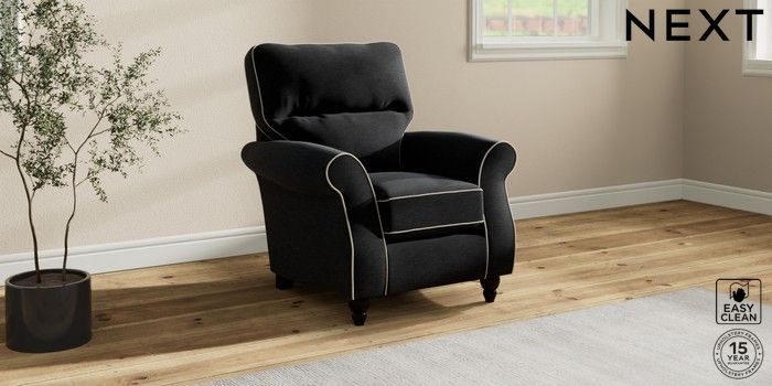 7.3.1 Buy Ashford Highback Small Armchair Fine Chenille with Contrast Black and Oyster Low Turned - Dark from the Seasons online shop Click here to use our website with more accessibility support, for example screen readers