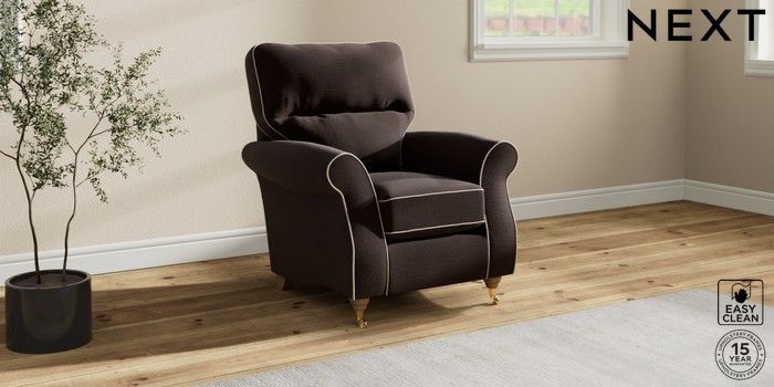 7.3.1 Buy Ashford Highback Small Armchair Fine Chenille with Contrast Chocolate Brown and Oyster Castor - Light from the Seasons online shop Click here to use our website with more accessibility support, for example screen readers