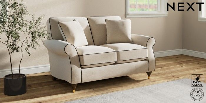 7.3.1 Buy Ashford Relaxed Sit 2 Seater Small Sofa Fine Chenille with Contrast Oyster and Black Modern Turned Metal Cap - Mid from the Seasons online shop Click here to use our website with more accessibility support, for example screen readers