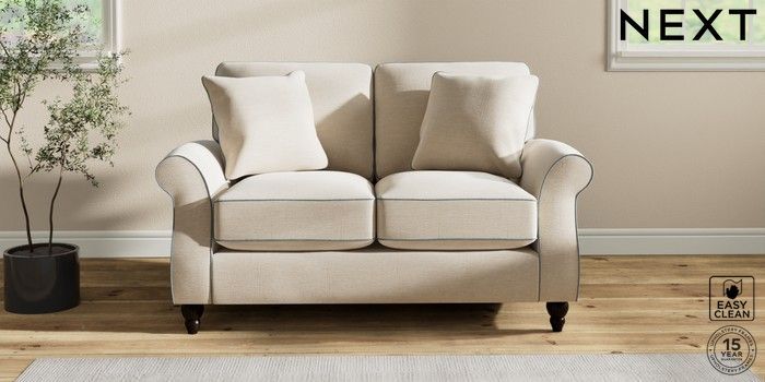 7.3.1 Buy Ashford Relaxed Sit 2 Seater Small Sofa Fine Chenille with Contrast Oyster and Mid Blue Low Turned - Dark from the Seasons online shop Click here to use our website with more accessibility support, for example screen readers
