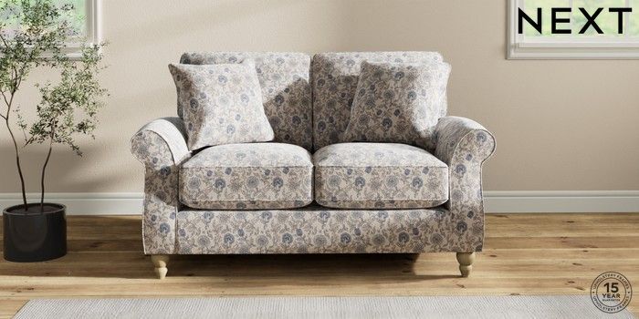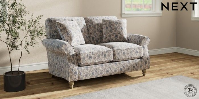 7.3.1 Buy Ashford Relaxed Sit 2 Seater Small Sofa Relaxed Linen Look Print Woodblock Floral Blue Low Turned - Light from the Seasons online shop Click here to use our website with more accessibility support, for example screen readers