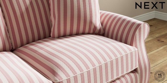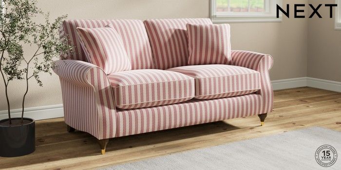 7.3.1 Buy Ashford Relaxed Sit 2 Seater Sofa Bold Chenille Stripe Dark Pink Modern Turned Metal Cap - Mid from the Seasons online shop Click here to use our website with more accessibility support, for example screen readers