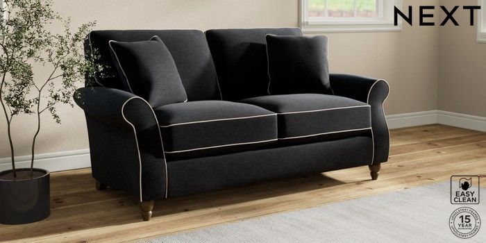 7.3.1 Buy Ashford Relaxed Sit 2 Seater Sofa Fine Chenille with Contrast Black and Oyster Low Turned - Mid from the Seasons online shop Click here to use our website with more accessibility support, for example screen readers