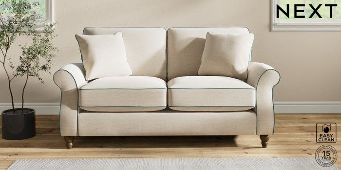 7.3.1 Buy Ashford Relaxed Sit 2 Seater Sofa Fine Chenille with Contrast Oyster and Dark Juniper Green Low Turned - Mid from the Seasons online shop Click here to use our website with more accessibility support, for example screen readers
