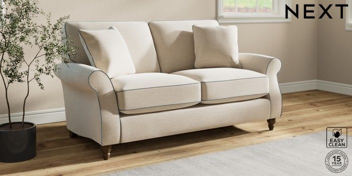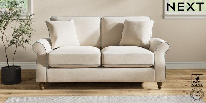 7.3.1 Buy Ashford Relaxed Sit 2 Seater Sofa Fine Chenille with Contrast Oyster and Mid Blue Low Turned - Mid from the Seasons online shop Click here to use our website with more accessibility support, for example screen readers
