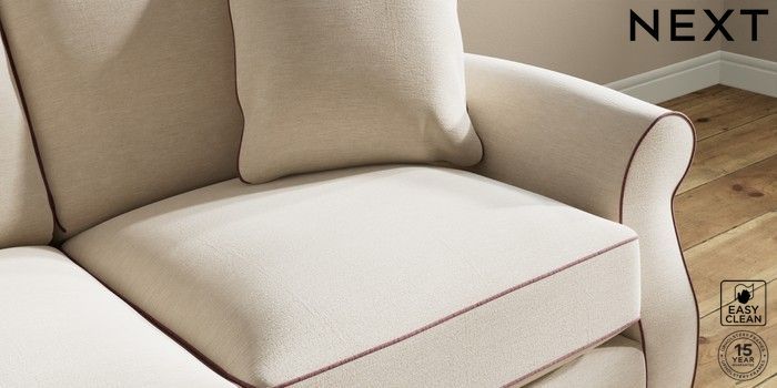 A chunky, hardwearing fabric with a timeless look which can tackle most household stains by blotting or gently wiping the fabric with water and a mild detergent. This Fabric is covered by the Quality Fabric Kitemark