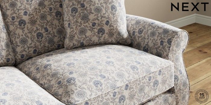 7.3.1 Buy Ashford Relaxed Sit 2 Seater Sofa Relaxed Linen Look Print Woodblock Floral Blue Castor - Dark from the Seasons online shop