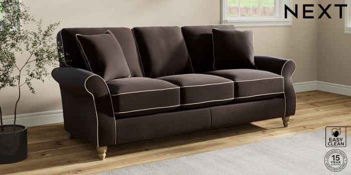 7.3.1 Buy Ashford Relaxed Sit 3 Cushion 3 Seater Sofa Fine Chenille with Contrast Chocolate Brown and Oyster Low Turned - Light from the Seasons online shop Click here to use our website with more accessibility support, for example screen readers