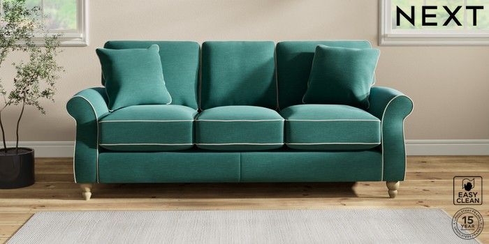 7.3.1 Buy Ashford Relaxed Sit 3 Cushion 3 Seater Sofa Fine Chenille with Contrast Dark Juniper Green and Oyster Low Turned - Light from the Seasons online shop Click here to use our website with more accessibility support, for example screen readers