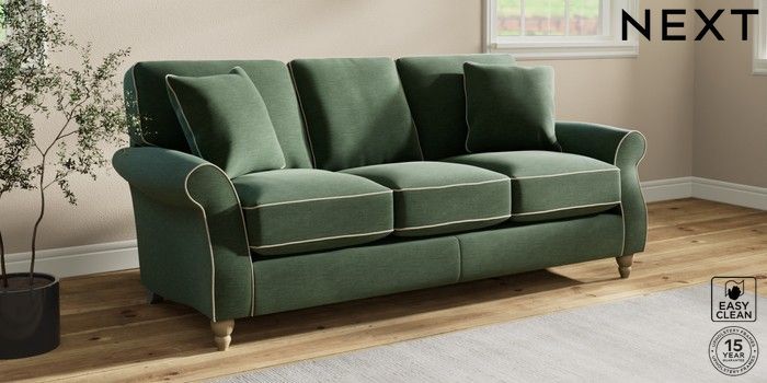 7.3.1 Buy Ashford Relaxed Sit 3 Cushion 3 Seater Sofa Fine Chenille with Contrast Mid Khaki Green and Oyster Low Turned - Light from the Seasons online shop Click here to use our website with more accessibility support, for example screen readers