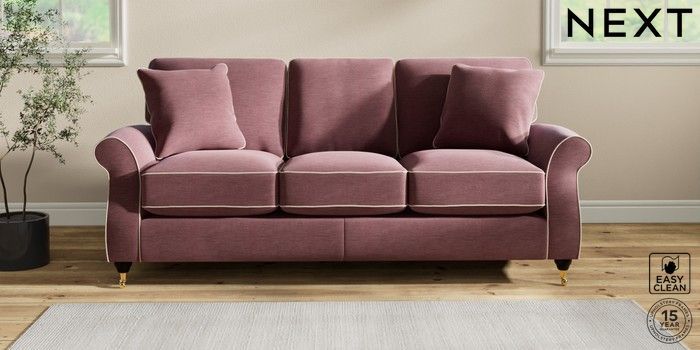 7.3.1 Buy Ashford Relaxed Sit 3 Cushion 3 Seater Sofa Fine Chenille with Contrast Mid Mulberry Purple and Oyster Castor - Dark from the Seasons online shop