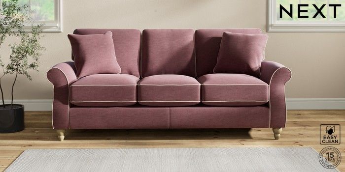 7.3.1 Buy Ashford Relaxed Sit 3 Cushion 3 Seater Sofa Fine Chenille with Contrast Mid Mulberry Purple and Oyster Low Turned - Light from the Seasons online shop