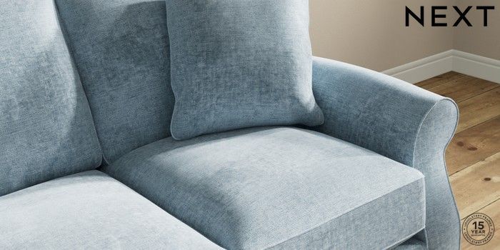 7.2.10 Buy Ashford Relaxed Sit 3 Cushion 3 Seater Sofa Plush Chenille Light Blue Low Turned - Dark from the Seasons online shop Click here to use our website with more accessibility support, for example screen readers