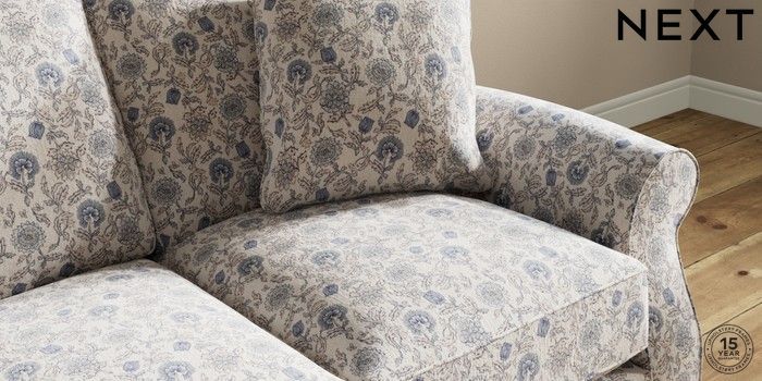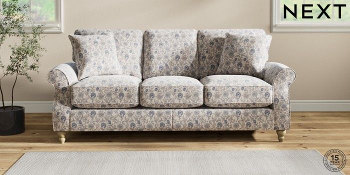 7.3.1 Buy Ashford Relaxed Sit 3 Cushion 3 Seater Sofa Relaxed Linen Look Print Woodblock Floral Blue Low Turned - Light from the Seasons online shop