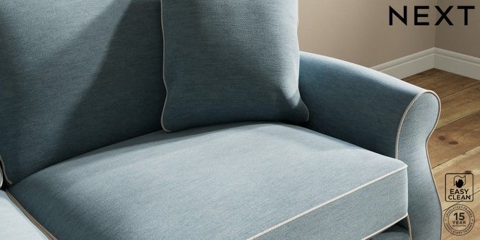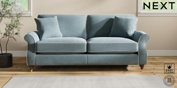 7.3.1 Buy Ashford Relaxed Sit 3 Seater Sofa Fine Chenille with Contrast Mid Blue and Oyster Modern Turned Metal Cap - Mid from the Seasons online shop Click here to use our website with more accessibility support, for example screen readers
