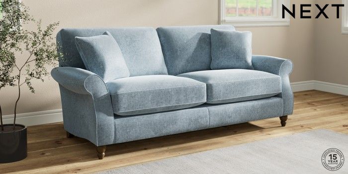 7.2.10 Buy Ashford Relaxed Sit 3 Seater Sofa Plush Chenille Light Blue Low Turned - Mid from the Seasons online shop Click here to use our website with more accessibility support, for example screen readers