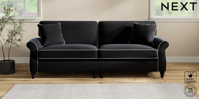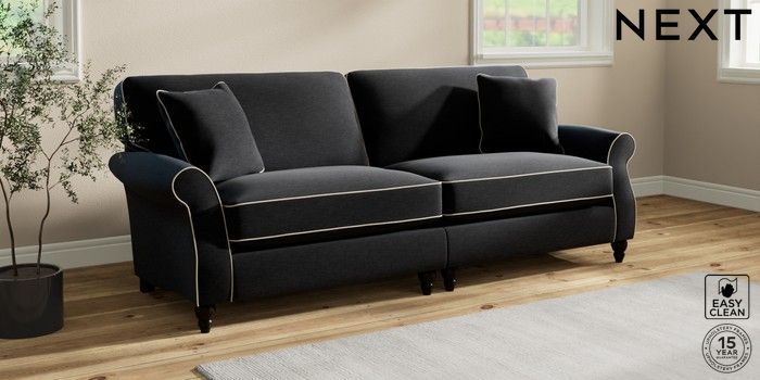 7.3.1 Buy Ashford Relaxed Sit 4 Seater Sofa Fine Chenille with Contrast Black and Oyster Low Turned - Dark from the Seasons online shop Click here to use our website with more accessibility support, for example screen readers