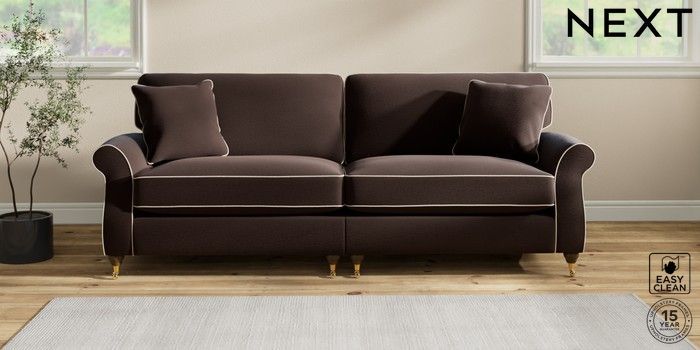 7.3.1 Buy Ashford Relaxed Sit 4 Seater Sofa Fine Chenille with Contrast Chocolate Brown and Oyster Castor - Mid from the Seasons online shop Click here to use our website with more accessibility support, for example screen readers