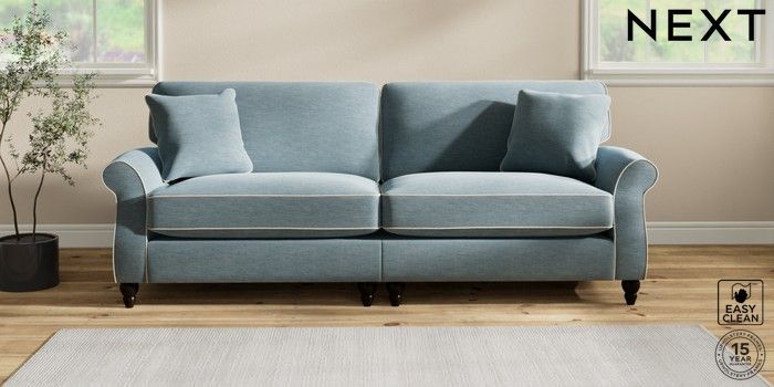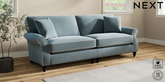 7.3.1 Buy Ashford Relaxed Sit 4 Seater Sofa Fine Chenille with Contrast Mid Blue and Oyster Low Turned - Dark from the Seasons online shop Click here to use our website with more accessibility support, for example screen readers