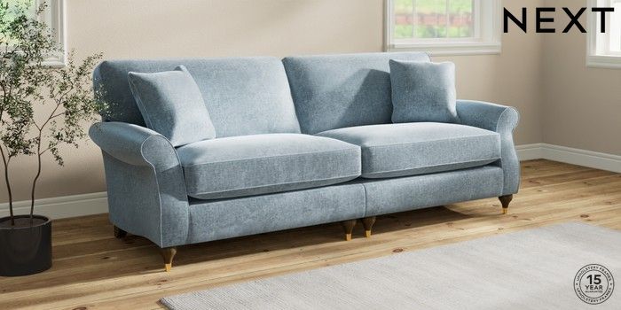 7.3.1 Buy Ashford Relaxed Sit 4 Seater Sofa Plush Chenille Light Blue Modern Turned Metal Cap - Mid from the Seasons online shop Click here to use our website with more accessibility support, for example screen readers