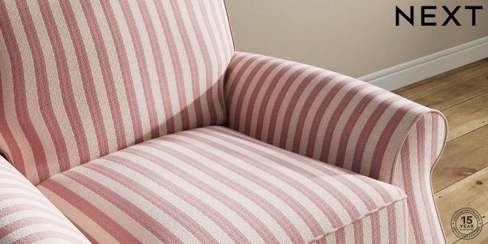 7.3.1 Buy Ashford Relaxed Sit Armchair Bold Chenille Stripe Dark Pink Modern Turned Metal Cap - Mid from the Seasons online shop Click here to use our website with more accessibility support, for example screen readers