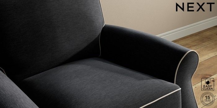 7.3.1 Buy Ashford Relaxed Sit Armchair Fine Chenille with Contrast Black and Oyster Low Turned - Light from the Seasons online shop Click here to use our website with more accessibility support, for example screen readers
