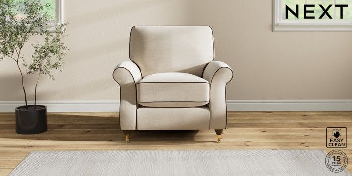 7.3.1 Buy Ashford Relaxed Sit Armchair Fine Chenille with Contrast Oyster and Chocolate Brown Castor - Mid from the Seasons online shop Click here to use our website with more accessibility support, for example screen readers