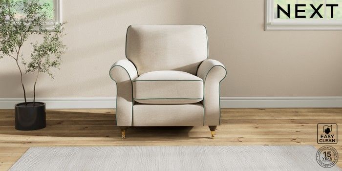 7.3.1 Buy Ashford Relaxed Sit Armchair Fine Chenille with Contrast Oyster and Dark Juniper Green Castor - Mid from the Seasons online shop Click here to use our website with more accessibility support, for example screen readers