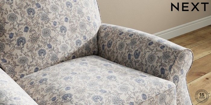 7.3.1 Buy Ashford Relaxed Sit Armchair Relaxed Linen Look Print Woodblock Floral Blue Castor - Dark from the Seasons online shop