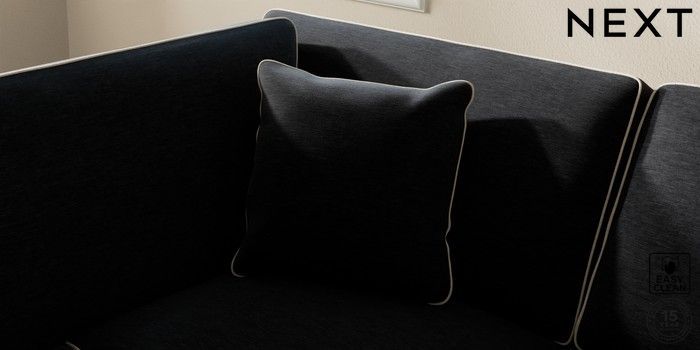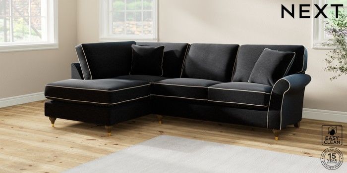 7.3.1 Buy Ashford Relaxed Sit Medium Corner Chaise - Left Hand Fine Chenille with Contrast Black and Oyster Modern Turned Metal Cap - Mid from the Seasons online shop Click here to use our website with more accessibility support, for example screen readers