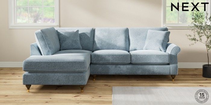 7.2.10 Buy Ashford Relaxed Sit Medium Corner Chaise - Left Hand Plush Chenille Light Blue Modern Turned Metal Cap - Mid from the Seasons online shop Click here to use our website with more accessibility support, for example screen readers