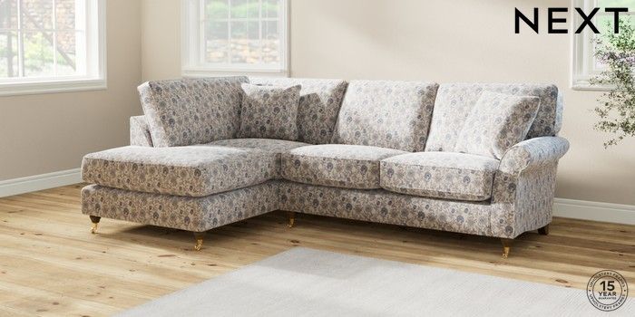 7.3.1 Buy Ashford Relaxed Sit Medium Corner Chaise - Left Hand Relaxed Linen Look Print Woodblock Floral Blue Castor - Mid from the Seasons online shop Click here to use our website with more accessibility support, for example screen readers