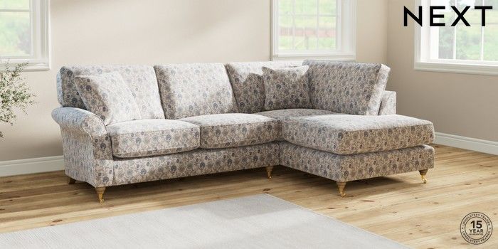 7.3.1 Buy Ashford Relaxed Sit Medium Corner Chaise - Right Hand Relaxed Linen Look Print Woodblock Floral Blue Castor - Light from the Seasons online shop Click here to use our website with more accessibility support, for example screen readers
