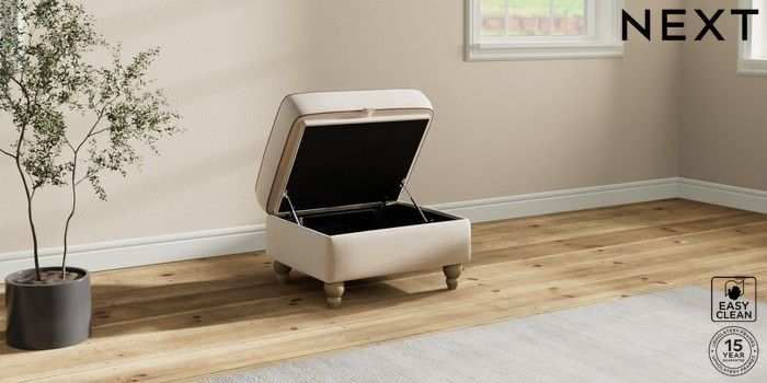 7.3.1 Buy Ashford Relaxed Sit Storage Footstool Fine Chenille with Contrast Oyster and Mid Mulberry Purple Low Turned - Light from the Seasons online shop Click here to use our website with more accessibility support, for example screen readers