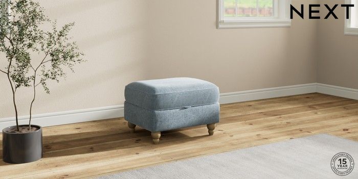 7.2.10 Buy Ashford Relaxed Sit Storage Footstool Plush Chenille Light Blue Low Turned - Light from the Seasons online shop Click here to use our website with more accessibility support, for example screen readers