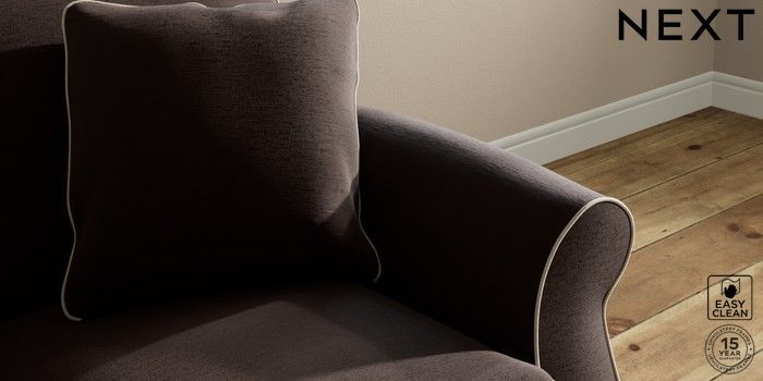 7.3.1 Buy Ashford 2 Seater Small Sofa Fine Chenille with Contrast Chocolate Brown and Oyster Castor - Dark from the Seasons online shop Click here to use our website with more accessibility support, for example screen readers