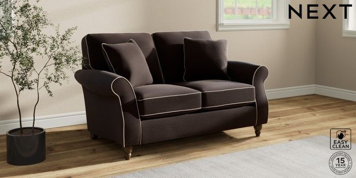 7.3.1 Buy Ashford 2 Seater Small Sofa Fine Chenille with Contrast Chocolate Brown and Oyster Low Turned - Mid from the Seasons online shop Click here to use our website with more accessibility support, for example screen readers